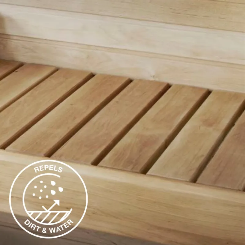 Supi Laudesuoja protects wooden sauna benches from moisture and dirt. The surface of the sauna bench, treated with Supi Laudesuoja, stays clean.