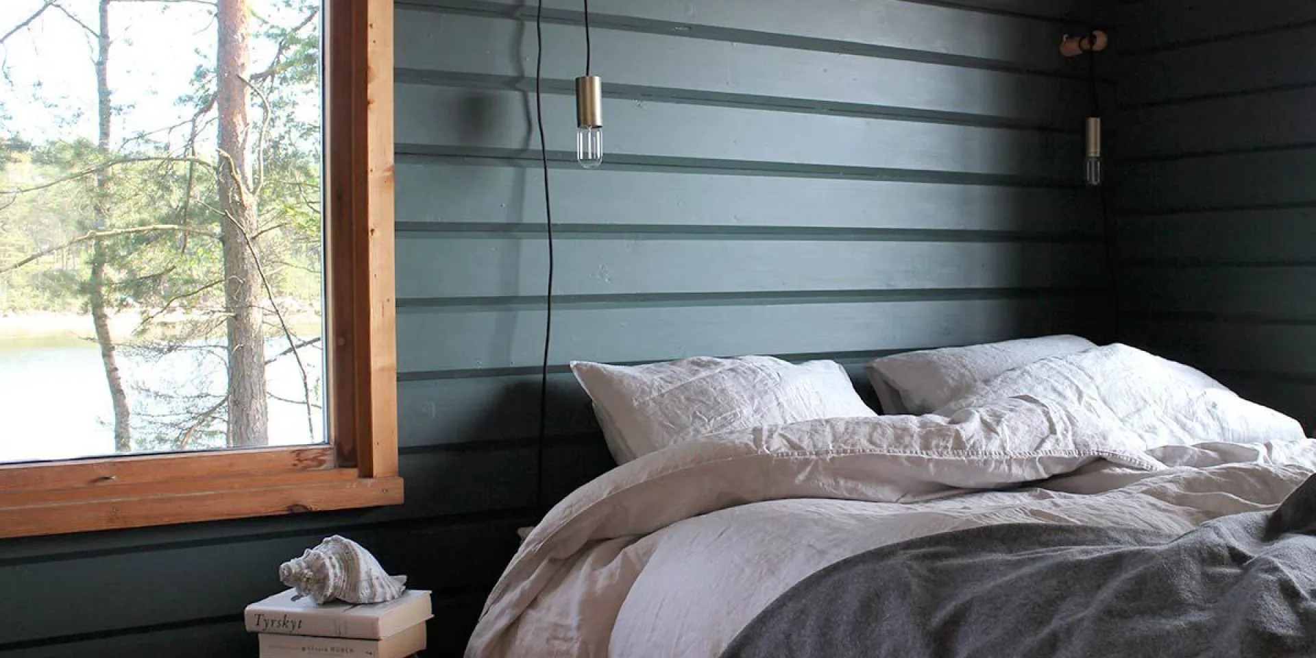 Local Artisan blogger Sanna painted her cottage bedroom in the Abyss shade. The cold, earthy greenish-blue shade is an excellent choice for the archipelago cottage. The log walls were painted beautifully matt. Here’s how you can give your cottage interior walls a new color just like Sanna!
