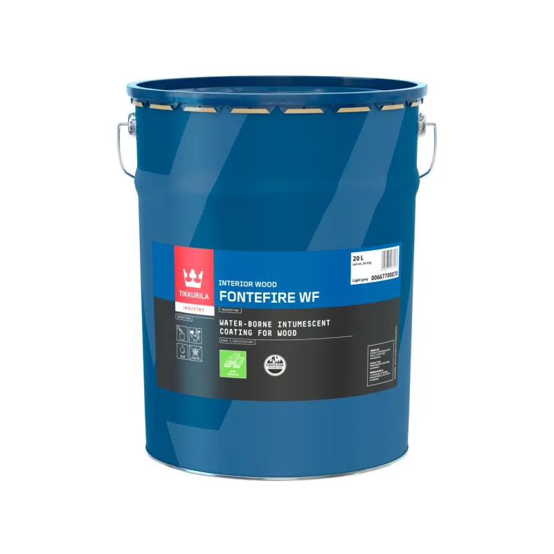 Water-borne intumescent coating with highest possible fire retardant properties on wood. When subjected to heat, Fontefire WF expands and forms an insulating layer of foam.