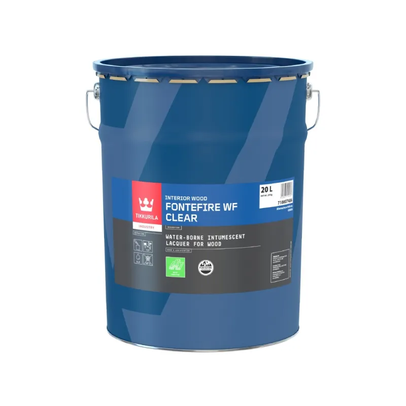 • Fontefire WF Clear has fire reaction class B-s1, d0, according to the standard EN 13501-1:2007+A1:2009, the highest possible for wood material. • The capability to dry Fontefire WF Clear both in ovens and in room temperature environments makes the product suitable for different kinds of users. • The M1 classification for low-emitting building materials has been granted by the Finnish Building Information Foundation RTS. • Fontefire WF Clear, with spreading 250 g/m2, can be top-lacquered with all colors in Akvilac WF 10. • Fontefire WF Clear highlights the beauty of soft wood. The transparent white color shade follows the grains of the wood. • Can only be used in dry indoor areas. On surfaces which are exposed to any splashes or wear/abrasion top lacquer must be used.