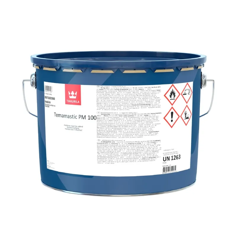 Temamastic PM 100 withstands immersion in water and can therefore be used e.g. on steel structures immersed in water. The paint is suitable for different types of steelwork, machinery and equipment in the wood processing and chemical industries.