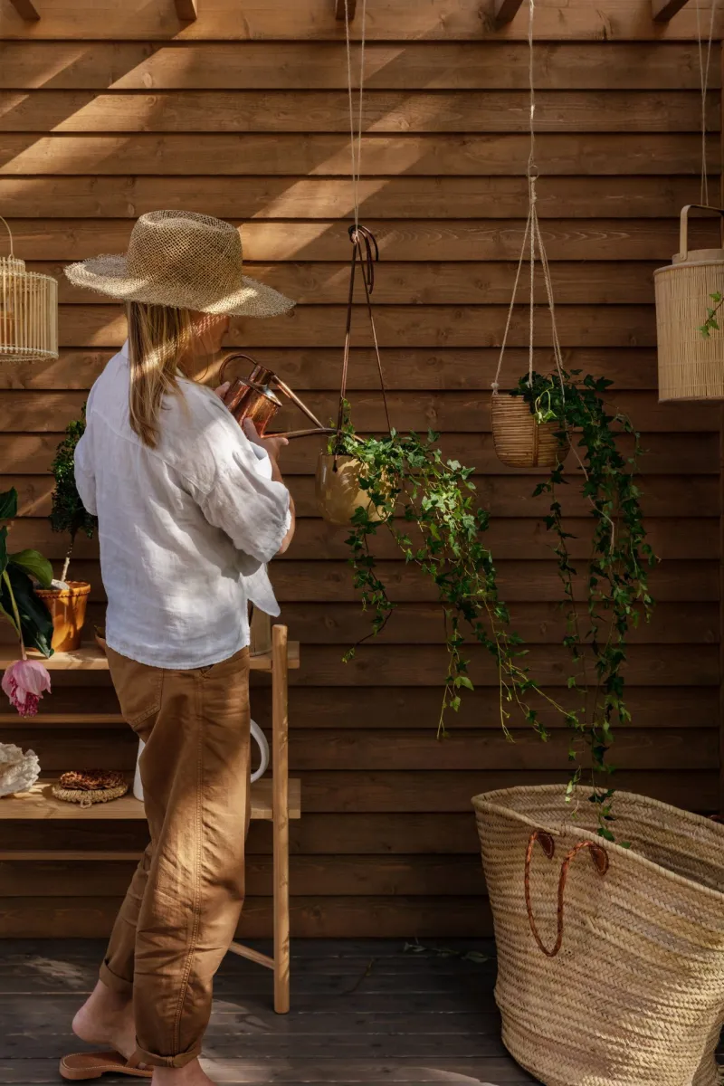 Despite plants and flowers, other elements of nature will also enhance the natural feel of the terrace. Try piling beautiful stones and cobbles or adding a water element. In decor, choosing natural materials, such as rattan, wicker, and wood, will help your terrace blend into the natural surroundings.