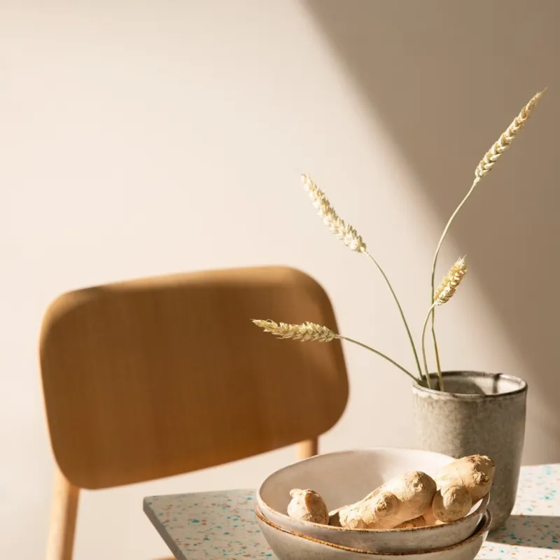 When looking for something fresh but not white, go for light beige with a hint of nude. A classical colour makes the surrounding shades shine.