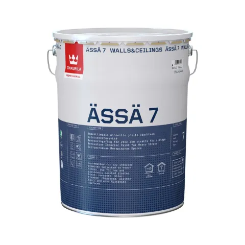 For walls and ceilings, a good option is Tikkurila Luja line or the Ässä line that is developed to meet professional needs and is also suitable for environmental classifications.