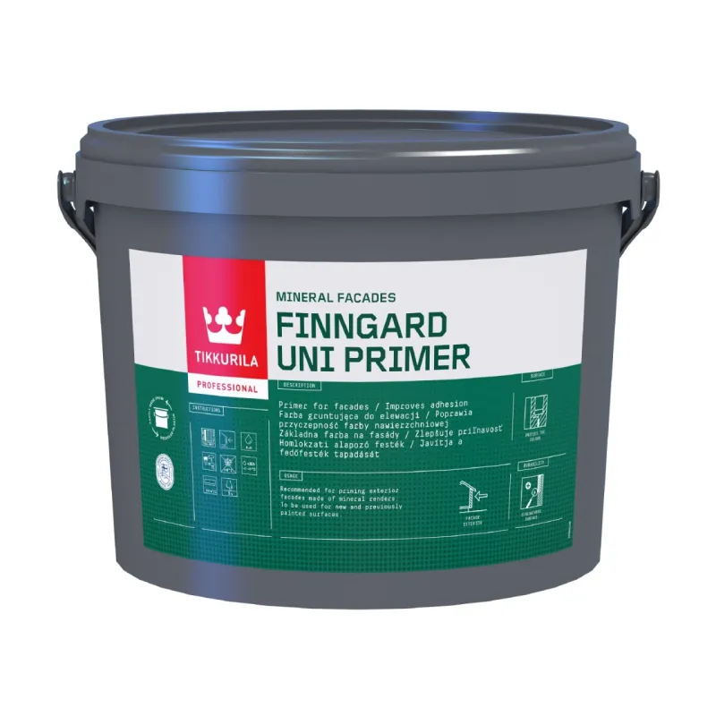 Finngard Uni Primer ensures uniformity of the colour of the painted surface. Priming paint improves paint adhesion by filling and anchoring in the pores of the substrate.