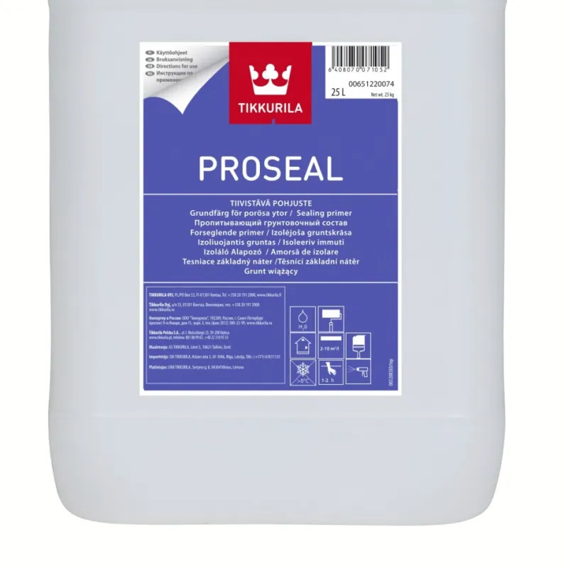 ProSeal is suitable for priming of interior walls and ceilings, on absorbing substrates. ProSeal can also be used for binding asbestos dust. Read the application instructions carefully before painting.