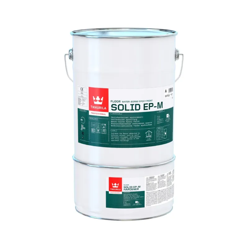 Solid EP-M is suitable for old and new concrete floors subjected to moderate stress e.g. in common spaces in apartment buildings and washingrooms. The product is also suitable for concrete floors previously treated with epoxy paint or coating. Only for professional use.